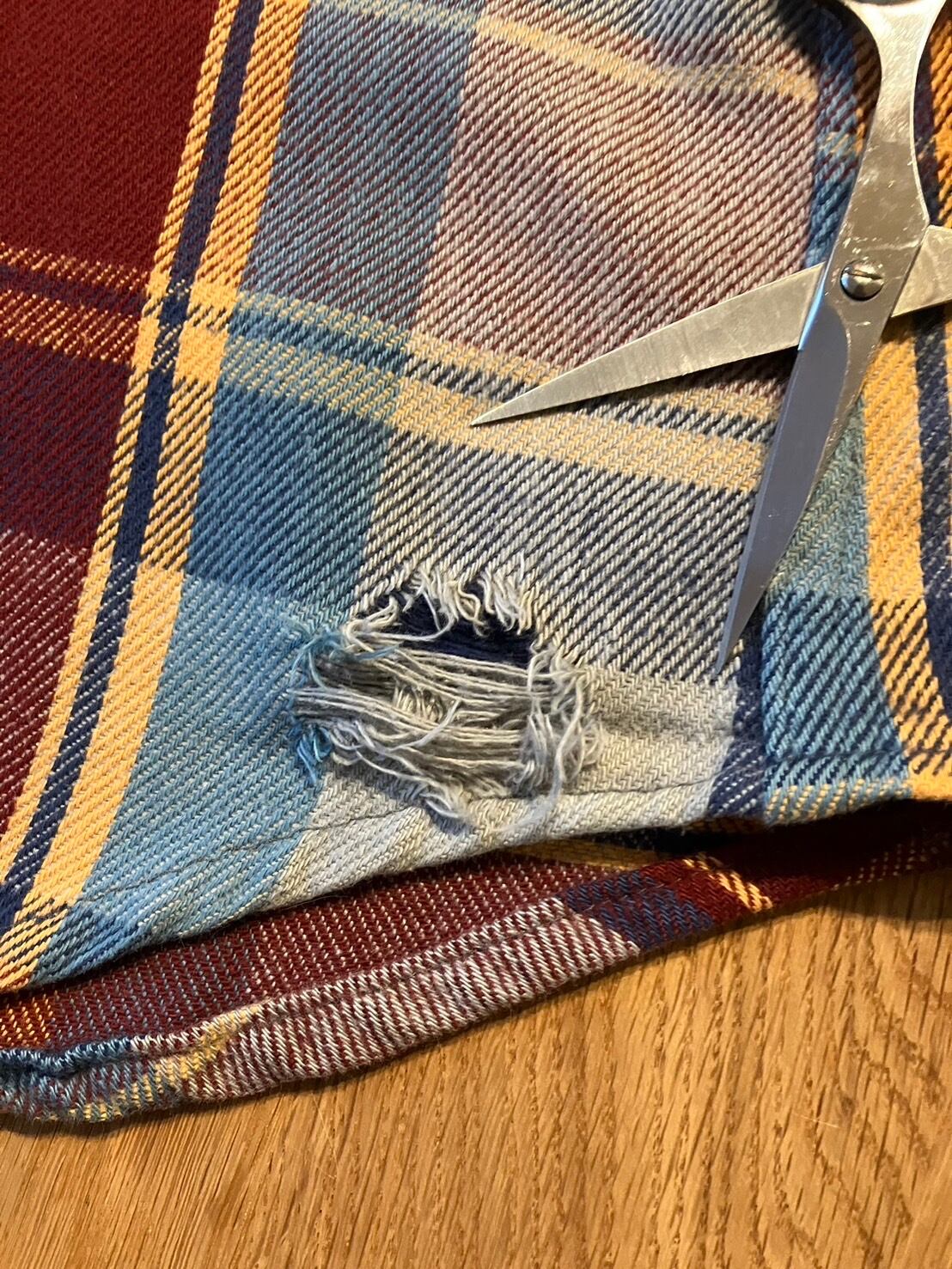 ★目立つ汚れ等はありませんが、左裾にダメージあり。