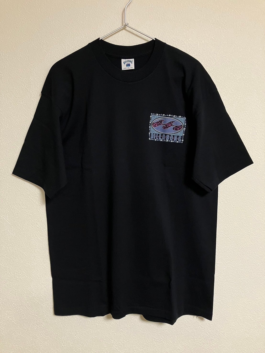 ★色柄/ブラック×ロゴ(波×フラワー)プリント(1992コピーライト)