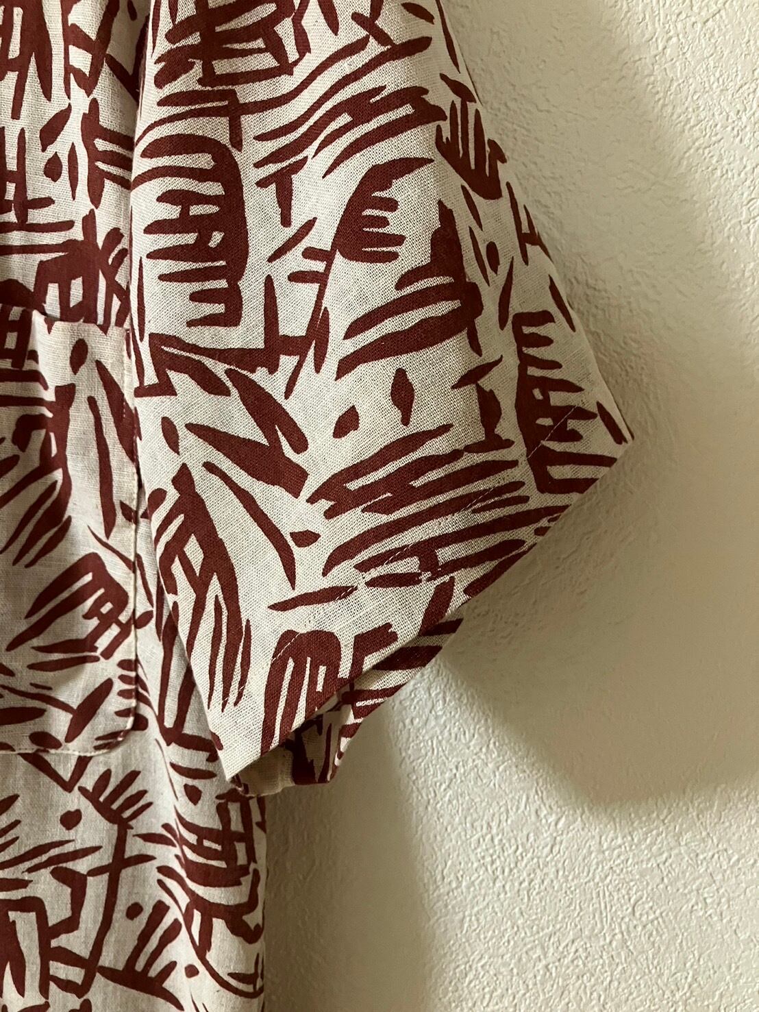 ★夏らしい、シルエット、カラー(総柄)、コットン×リネン混紡の素材感。