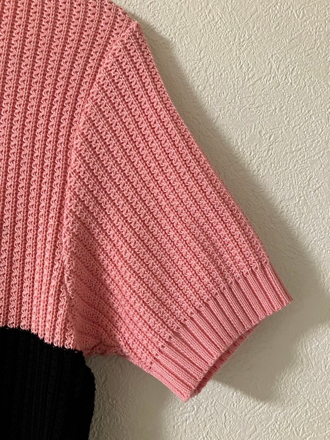 ★針抜き生地で、伸縮性がありジャストフィットで着用が可能、ブラック×ピンク(サマーニット)グッドコンディションのアイテムです。