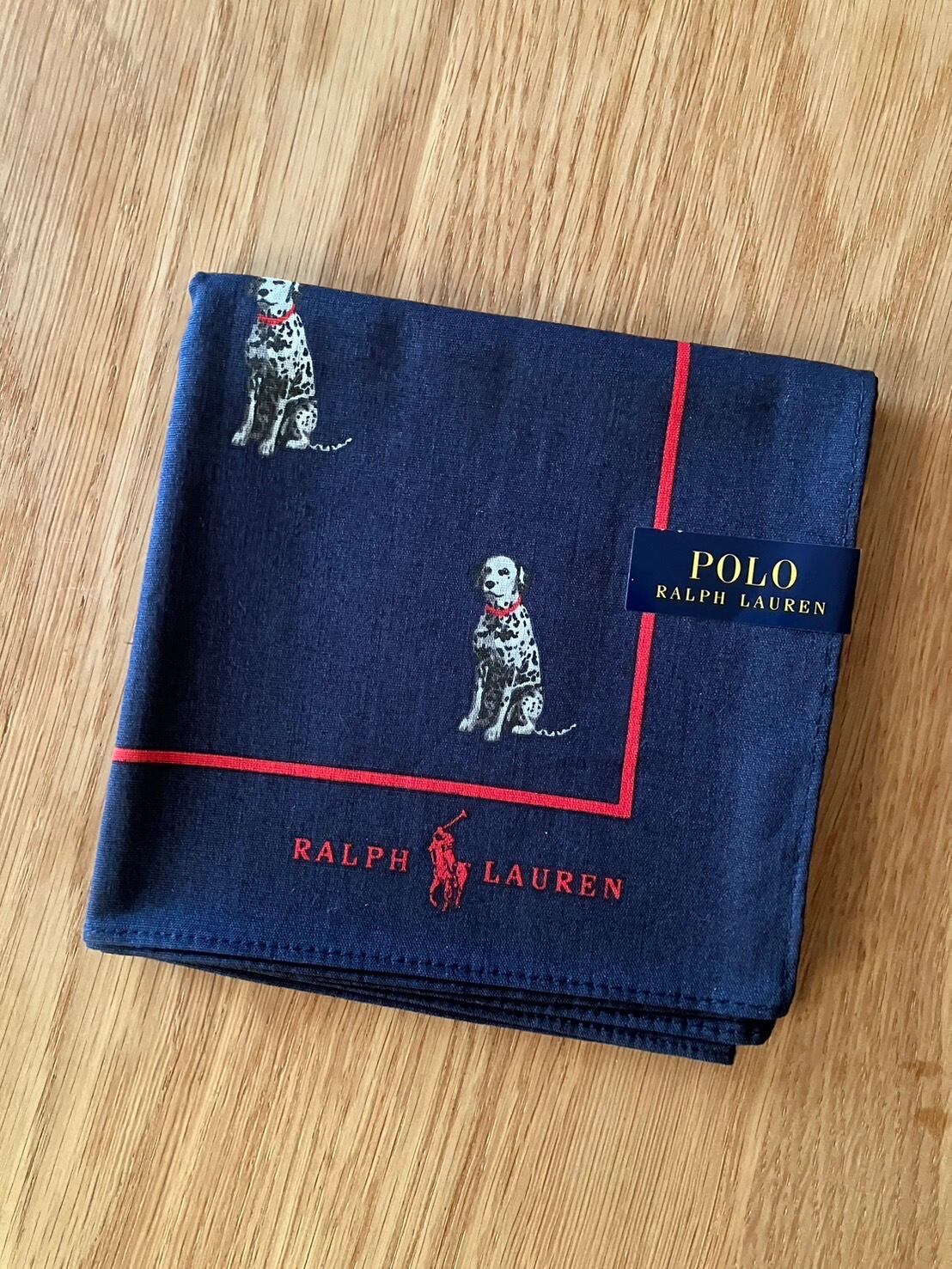 【TRL98】RALPH LAUREN ラルフローレン ハンカチ ネイビー/ダルメシアン(犬柄) 綿100% 日本製 未使用