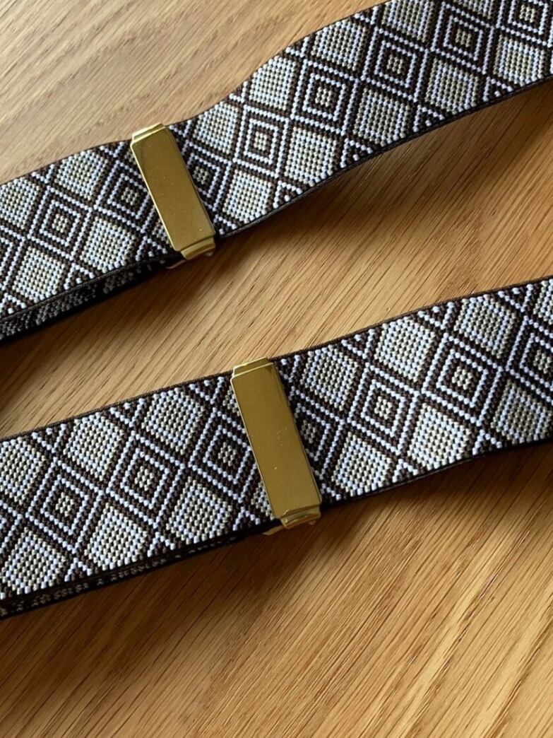 【TOT89】Dappersダッパーズ サスペンダー Lot1447B(DARK BROWN /BEIGE/Diamond) 30sスタイル 換えボタン(6個)専用ケース入り 良品