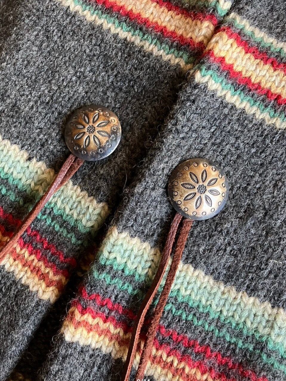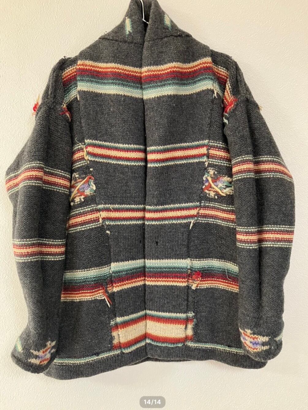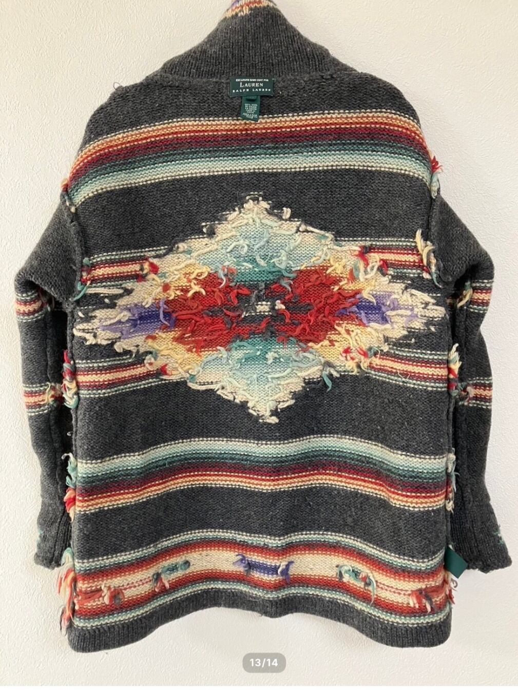 【TRL23】80s90s RAUREN RALPH LAUREN ラルフローレン ハンドニットガウン グレー/ネイティブ Mサイズ サンタフェコレクション