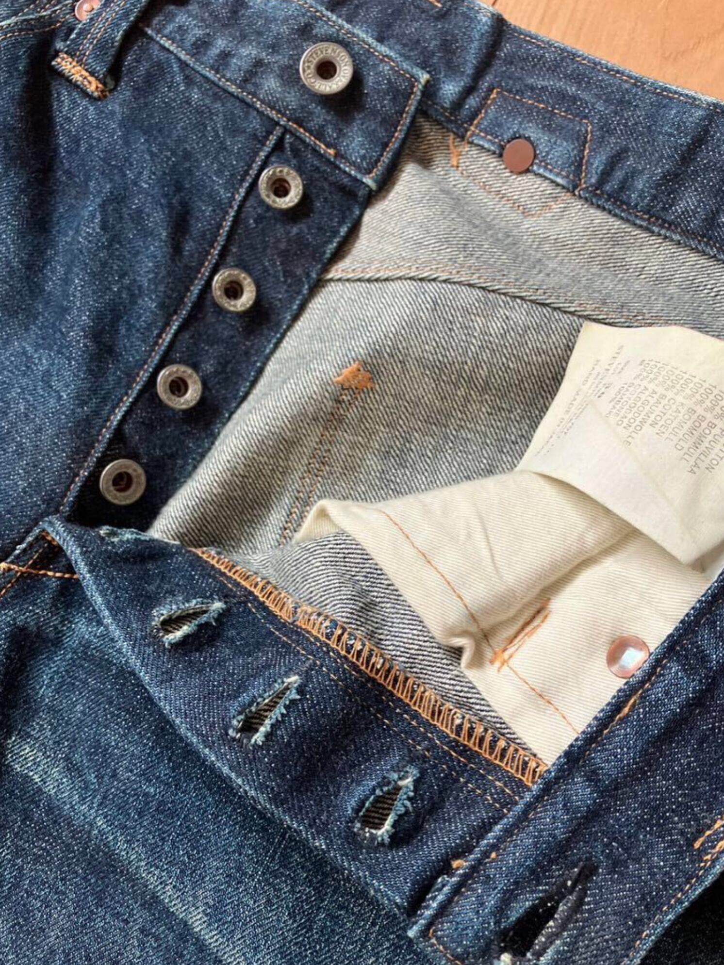 ★14ozセルヴィッチデニム/コインポイント(耳付き)/バックルバック/裾(シングルステッチ)