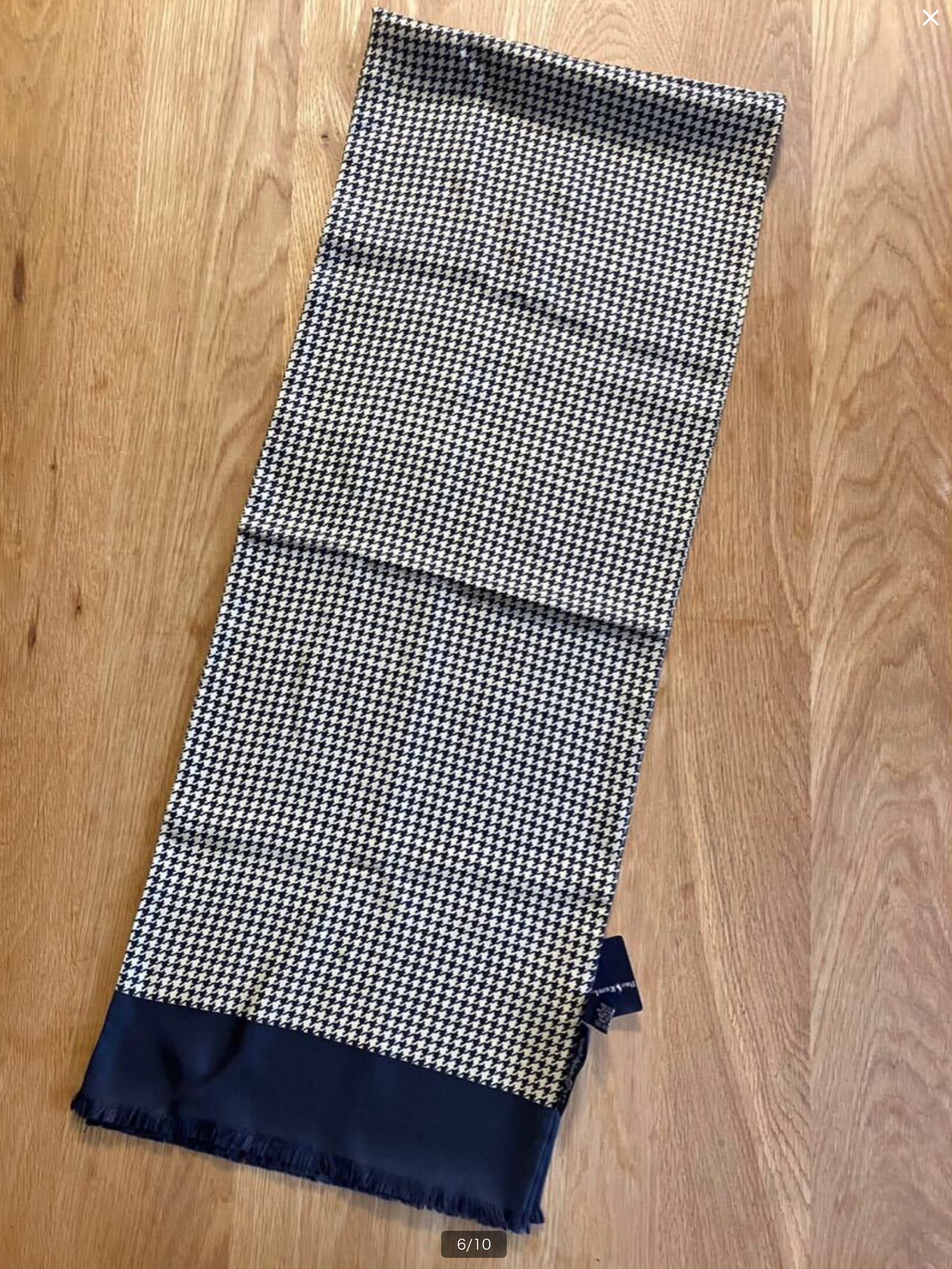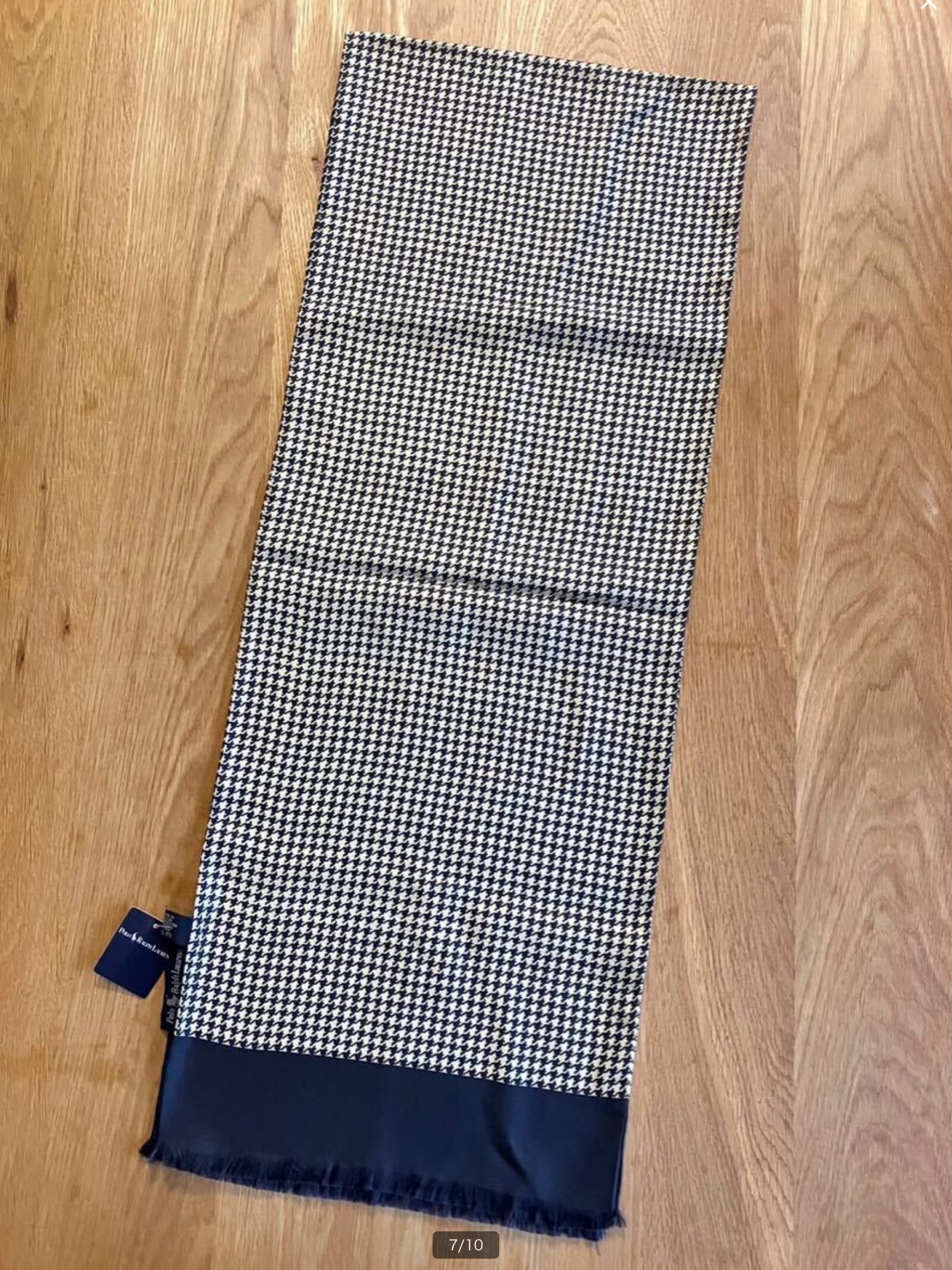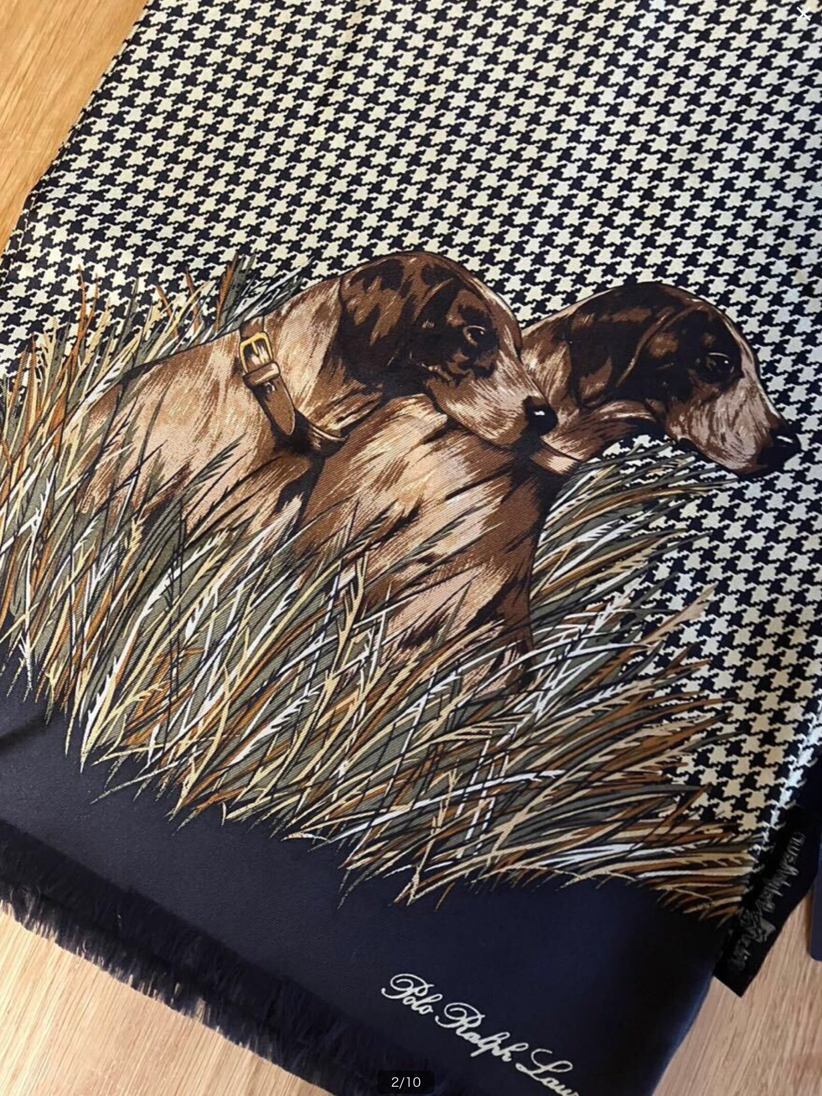 【TRL83】90s Ralph Lauren ラルフローレン マフラー/ストール ブラック×ゴールド(千鳥格子)犬柄 100%シルク MADE IN JAPAN 下げ札付き(デッドストック) | ツバメヤ
