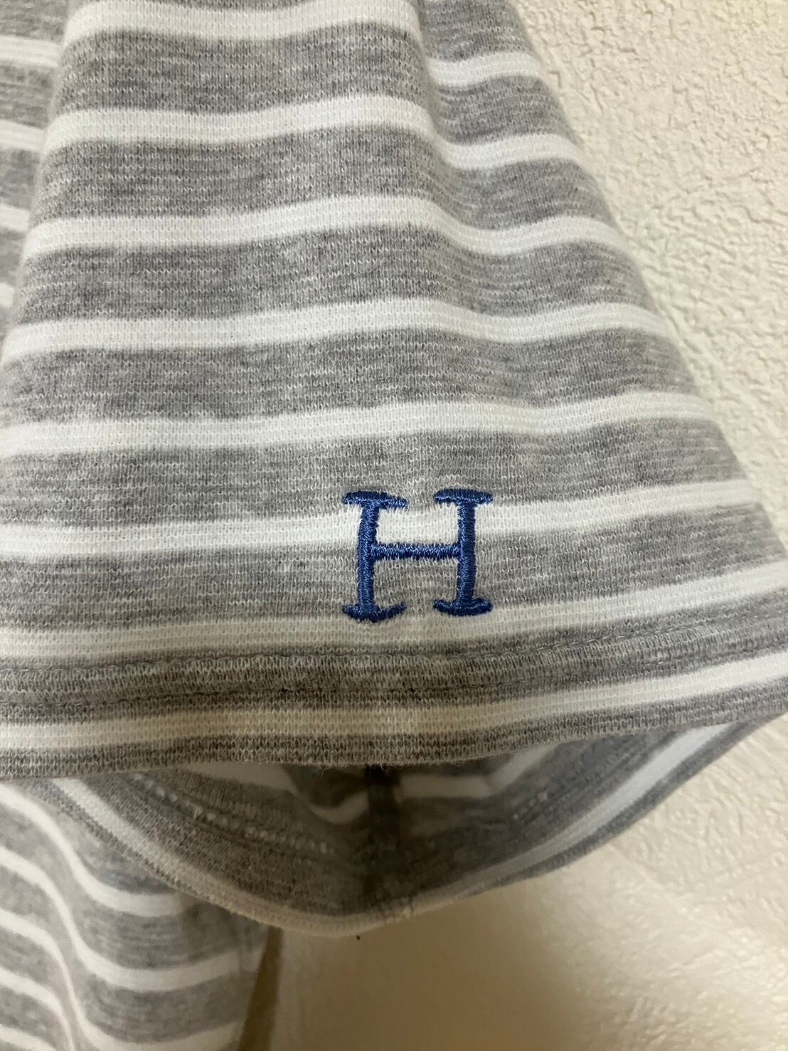 ★色柄/ホワイト×ライトグレー(ボーダー)/左袖(H刺繍)ブルー