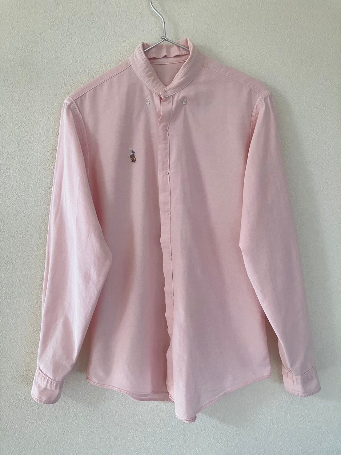 【TRL174】80s 90s Ralph Lauren ラルフローレン 長袖シャツ(ボタンダウン) ピンク(ワンポイントポニー刺繍) コットン 100% サイズ20 グリーンタグ MADE IN USA オックスフォード | ツバメヤ