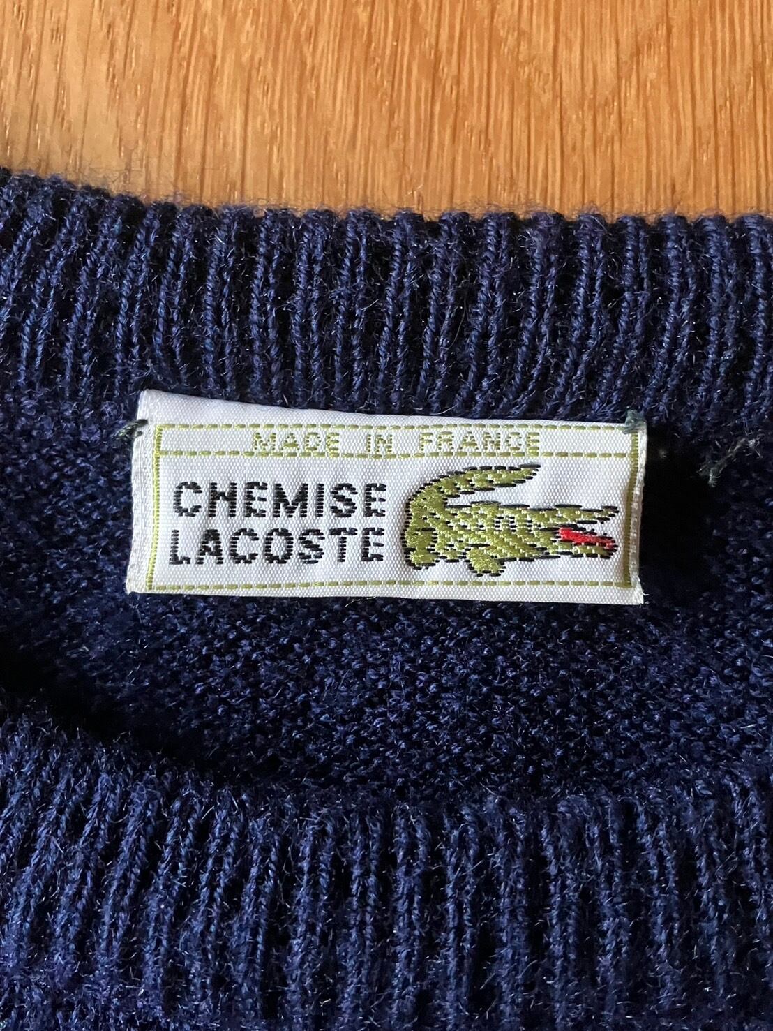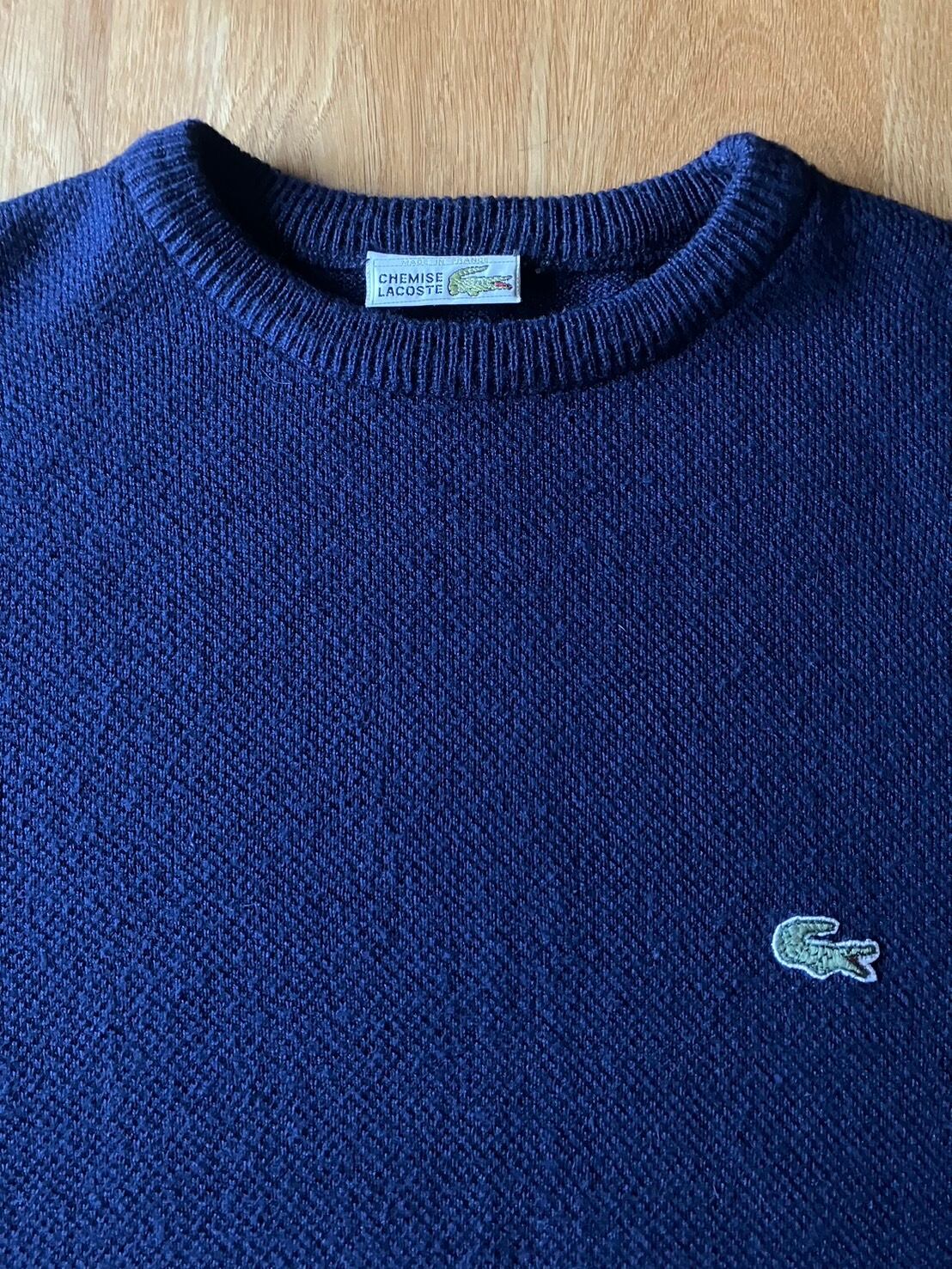 【TSW80】70sCHEMISE LACOSTE シュミーズラコステ 長袖セーター(クルーネック) ネイビー(左胸ワニワッペン刺繍) ウール×アクリル混紡 サイズ3 フランス製 70sビンテージ | ツバメヤ