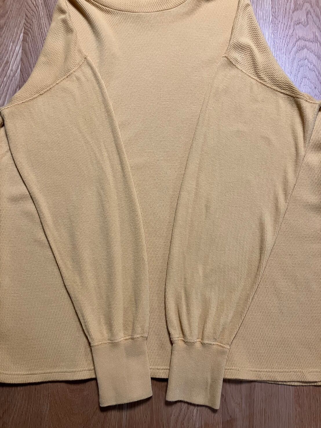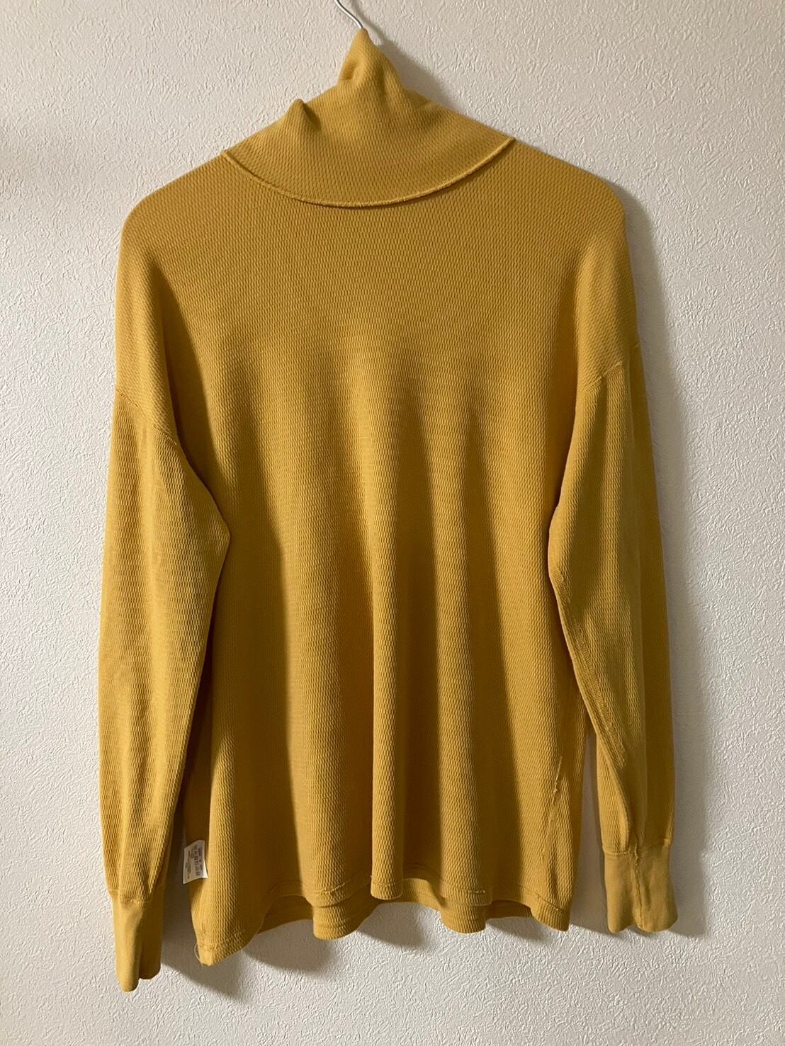 ★柔らかい凸凹感のあるサーマル生地。タートルネック部分は2重になっていて保温性も高いです。