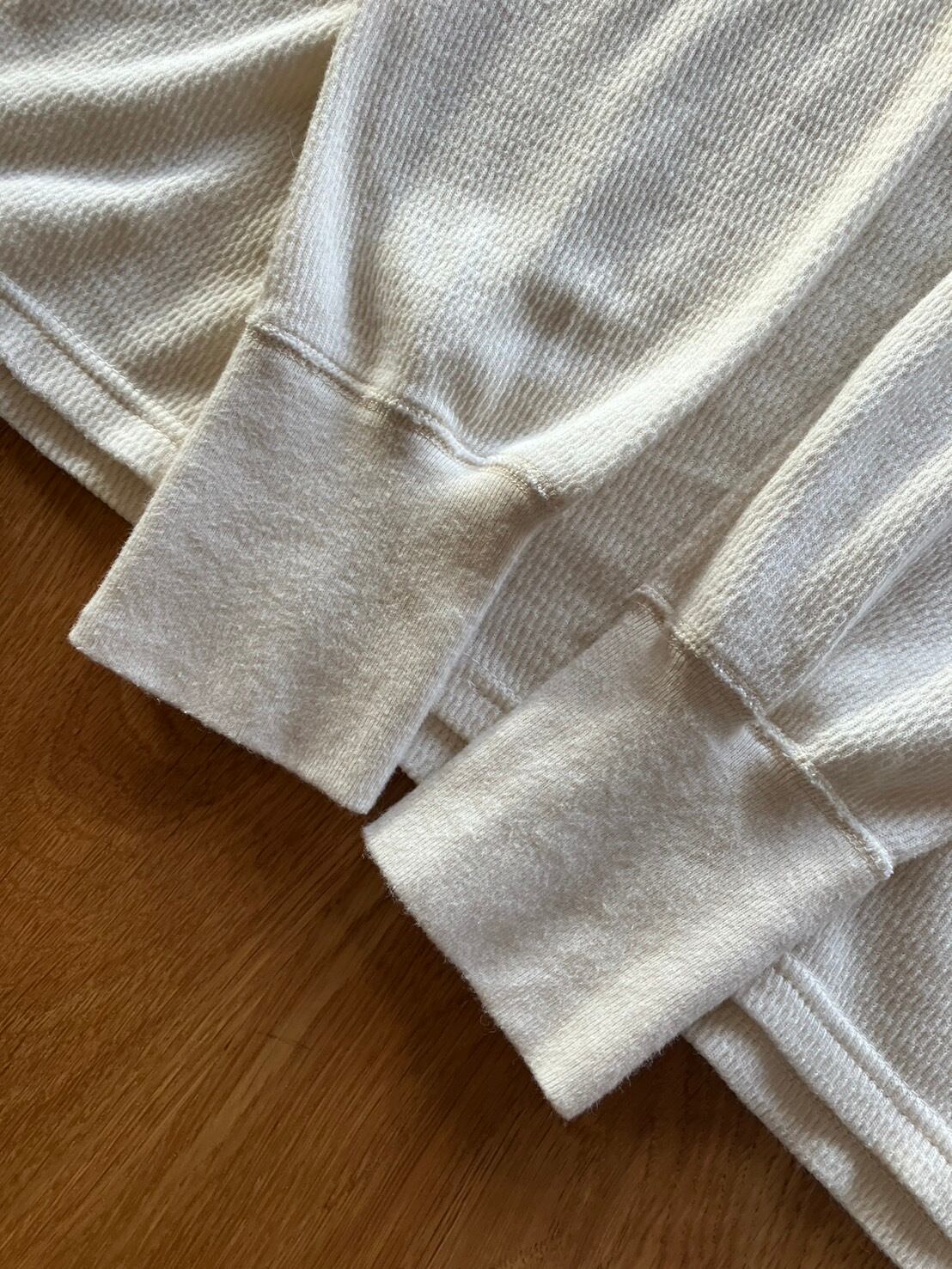 ★柔らかい凸凹感のあるサーマル生地。タートルネック部分は2重になっていて保温性も高いです。