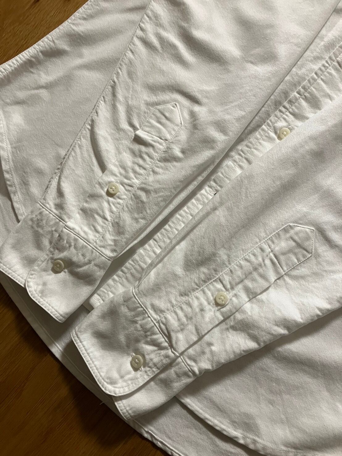 ★生地はしっかりとした程良い厚みと張りのあるオックスフォード生地、一着は持っていたいホワイトカラーのボタンダウンシャツ。日本人向けのサイズ感の良いアイテムです。