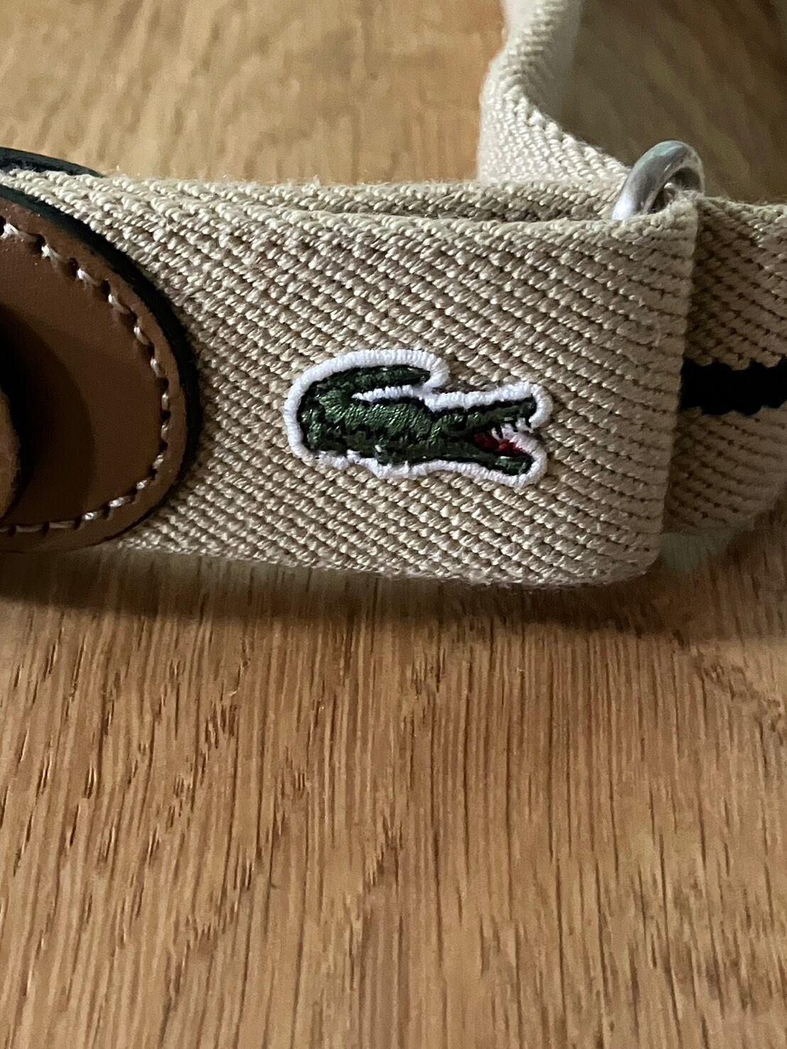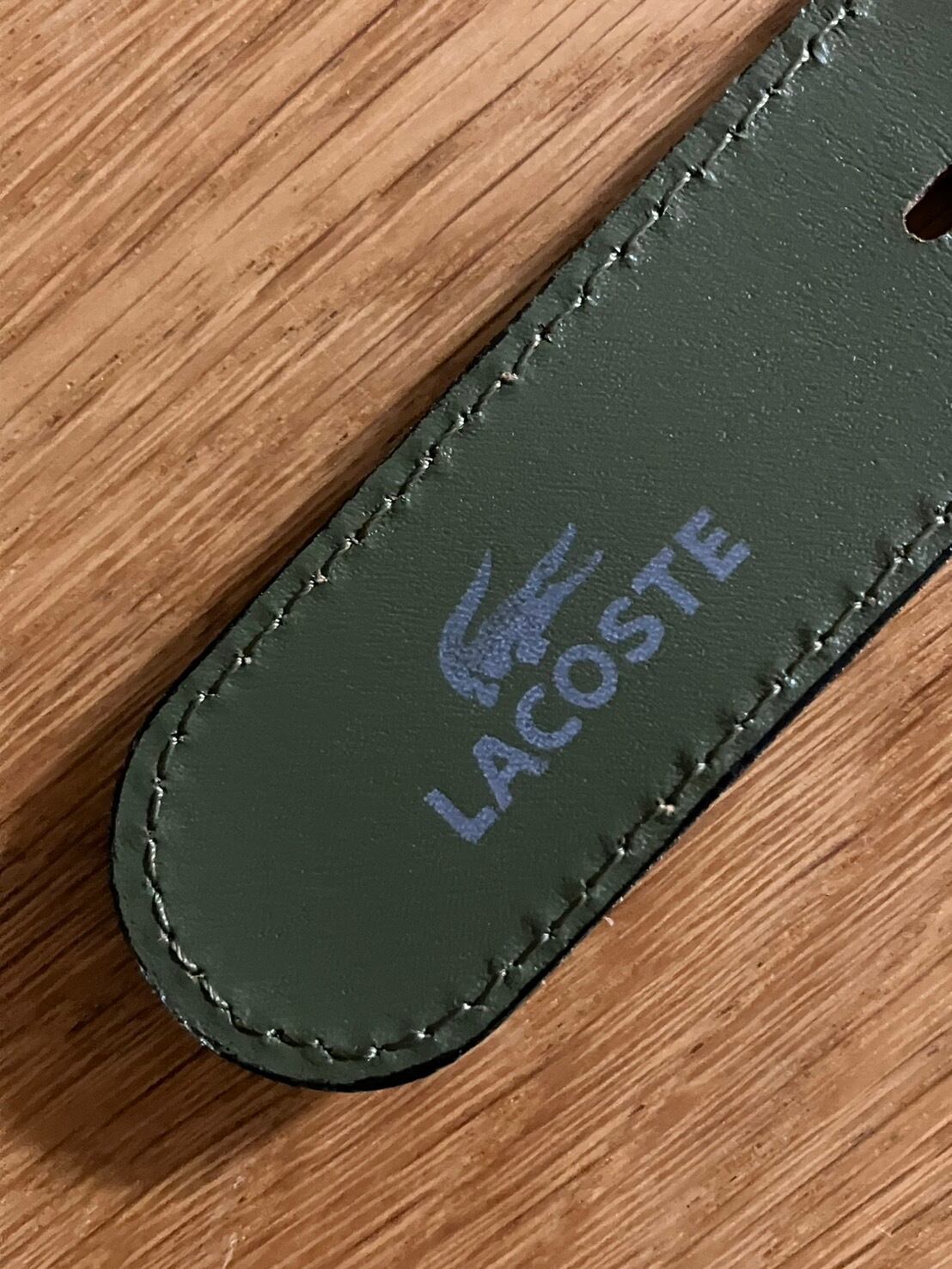 ★ワニ刺繍ワッペン、バックにLACOSTE(刻印)、レザー部分裏(LACOSTEスタンプ)