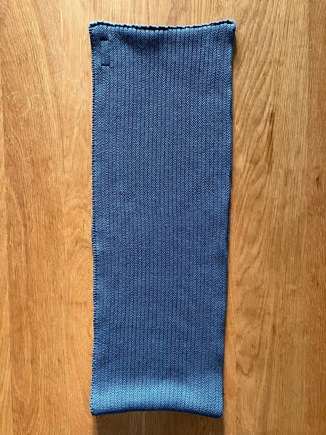 ★素材は伸縮性のあるコットンニット素材、インディゴテイスト(ライトブルーカラー)若干の色落ち(あたり)が出始めた状態です。