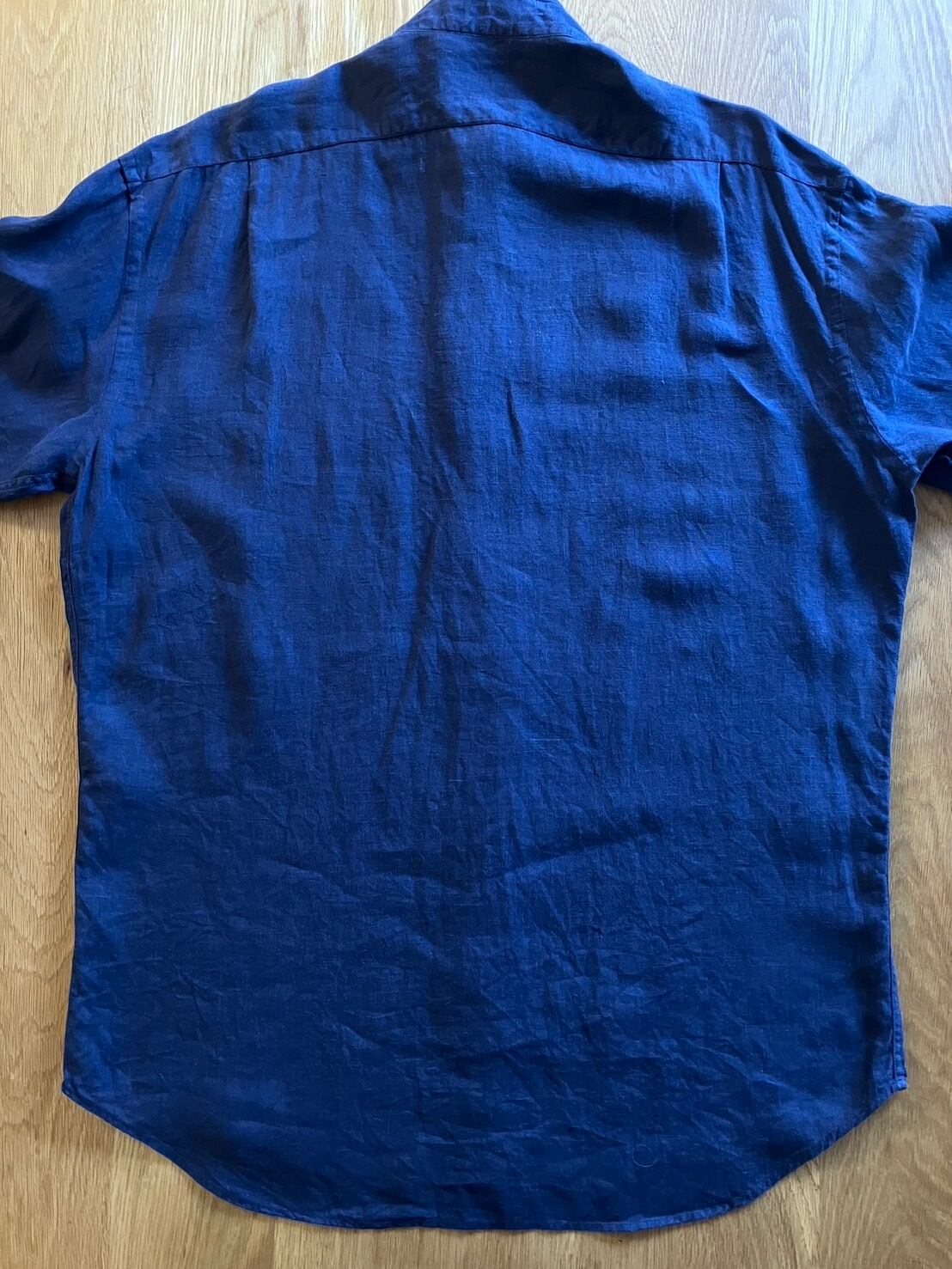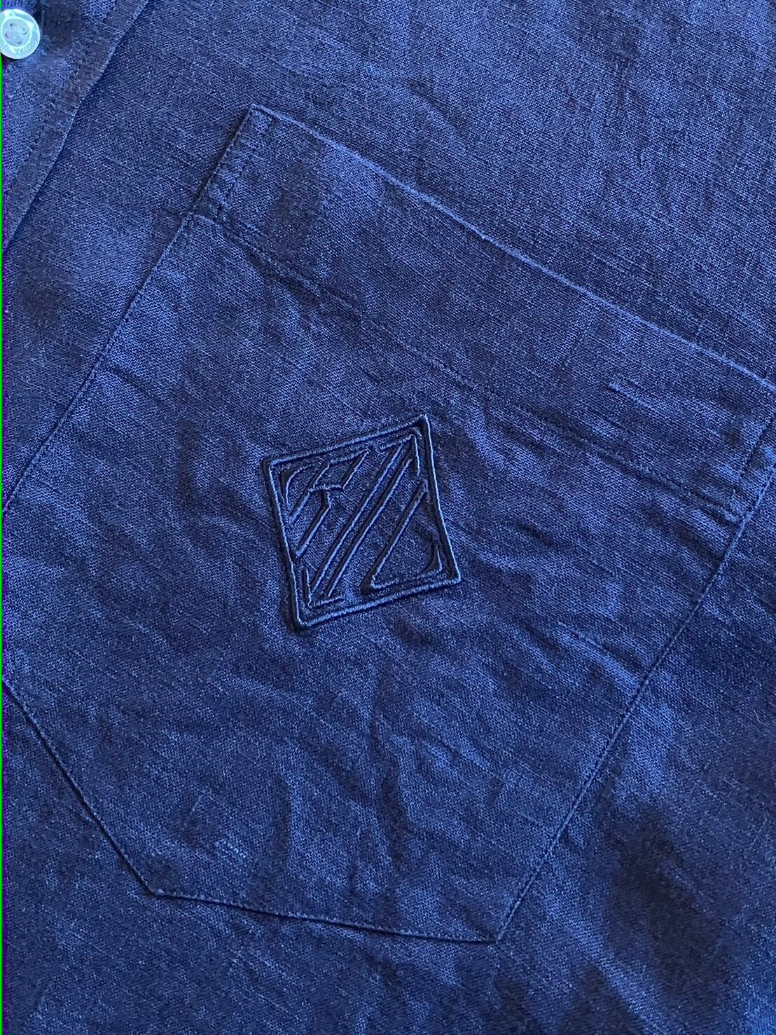 【TRL201】Ralph Lauren Purple Label ラルフローレン パープルレーベル 長袖シャツ(バンドカラー) ネイビー リネン100% Sサイズ イタリア製