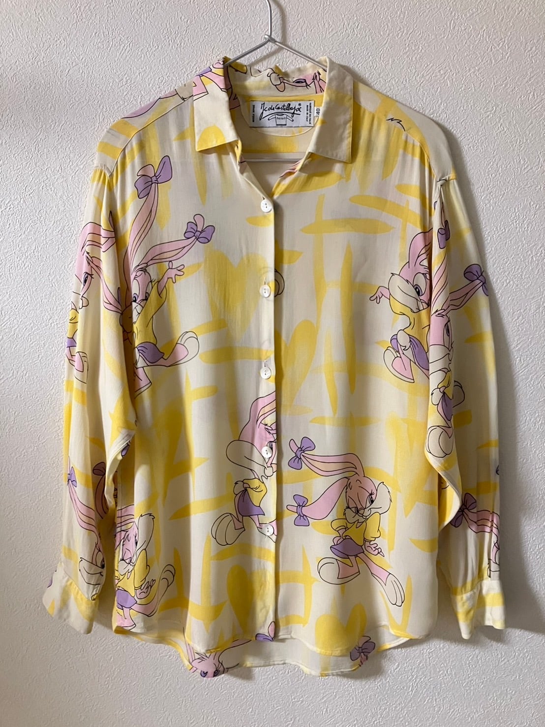【TLS75】90s CASTELBAJAC(カステルバジャック) 長袖シャツ 総柄(ルーニー・テューンズ/ローラ・バニー) 100%Rayon viscose サイズ40 イタリア製 【レディース】 | ツバメヤ