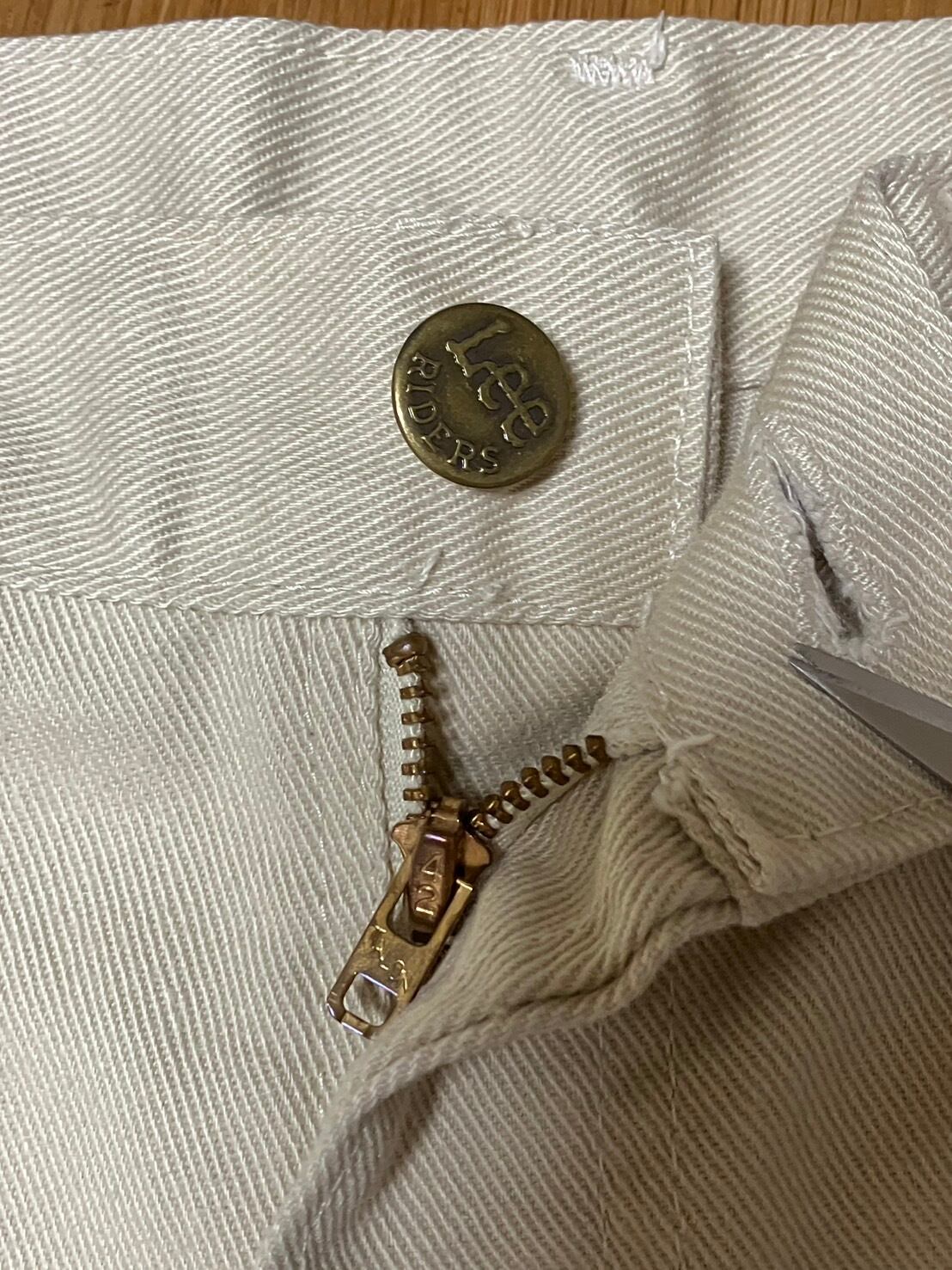 ★パッチ/ピスネーム/Lee®️M.R./ジッパー42TALON/トップボタンLeeRIDERS/裏(刻印無し)/フロントジッパー脇(品質管理)ペーパータグ(200 1016 34×34 182214750GVL167)右ポケット(スレキ)ユニオンチケット付き/センタープレス/裾(シングルステッチ)糸はベージュ系で実寸からおそらくオリジナルです。