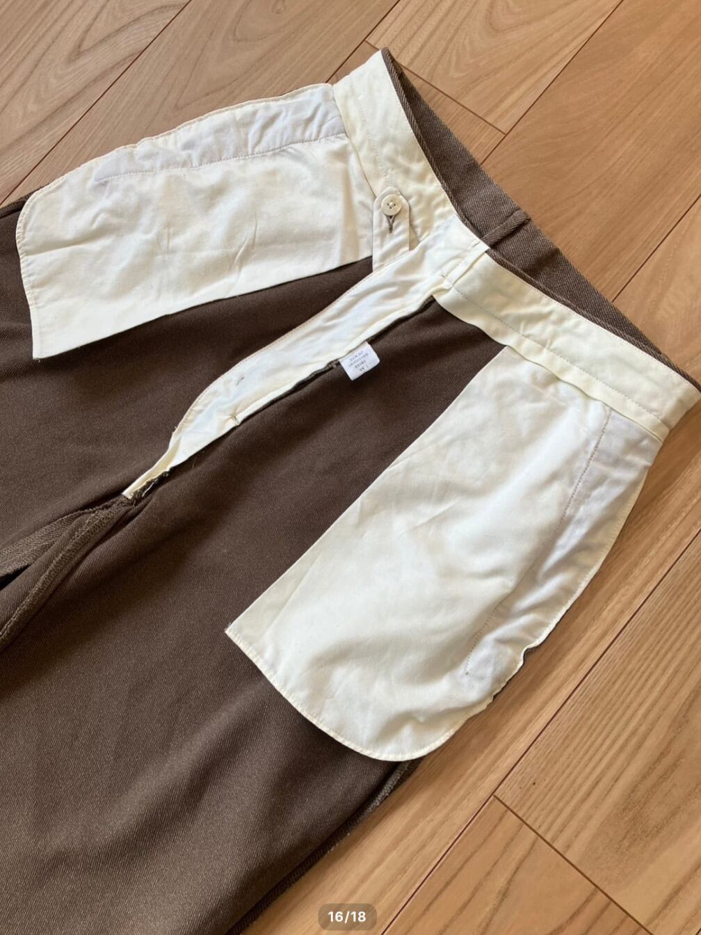 ★ウィップコードワークトラウザーズ、バックポケット左フラップ付き、フロントジップトップ天狗付き(内側ボタン留め)