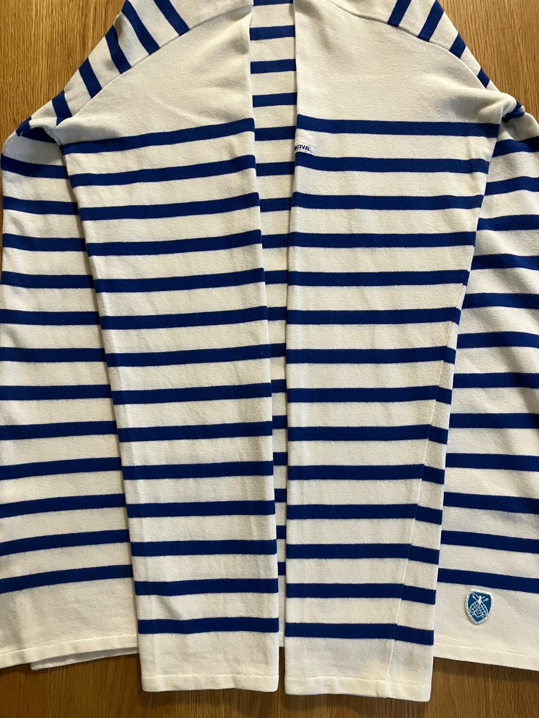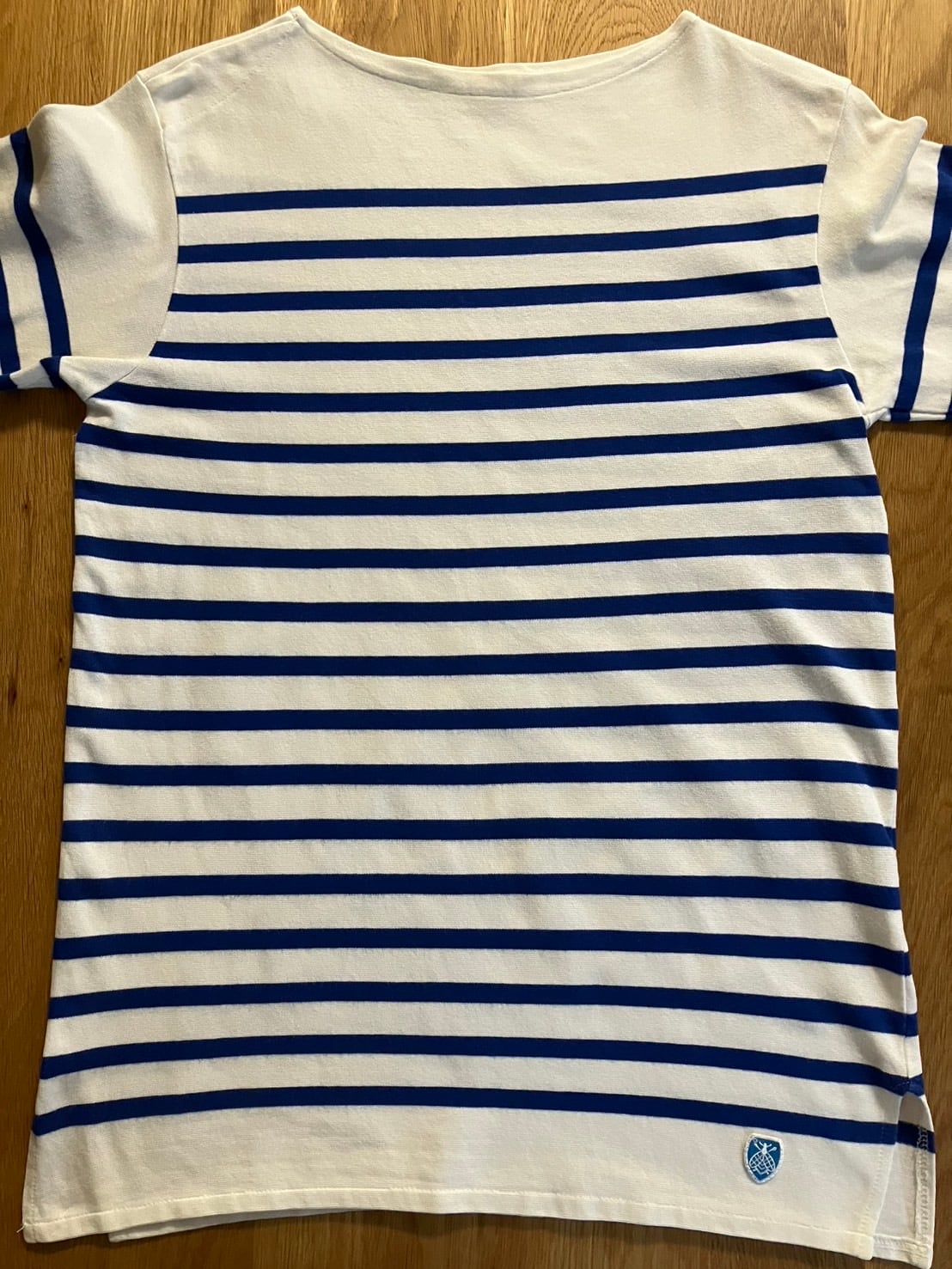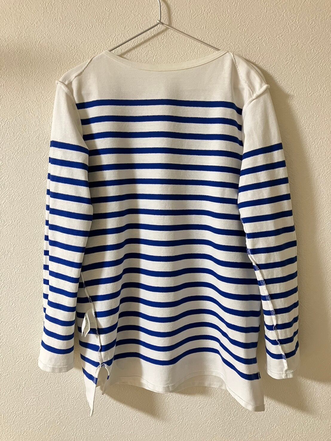 ★左肩(ピスネーム)左裾(ワッペン付き)左右裾(スリット入り)ボートネック/フレンチバスクマリンボーダー/横割りボディ
