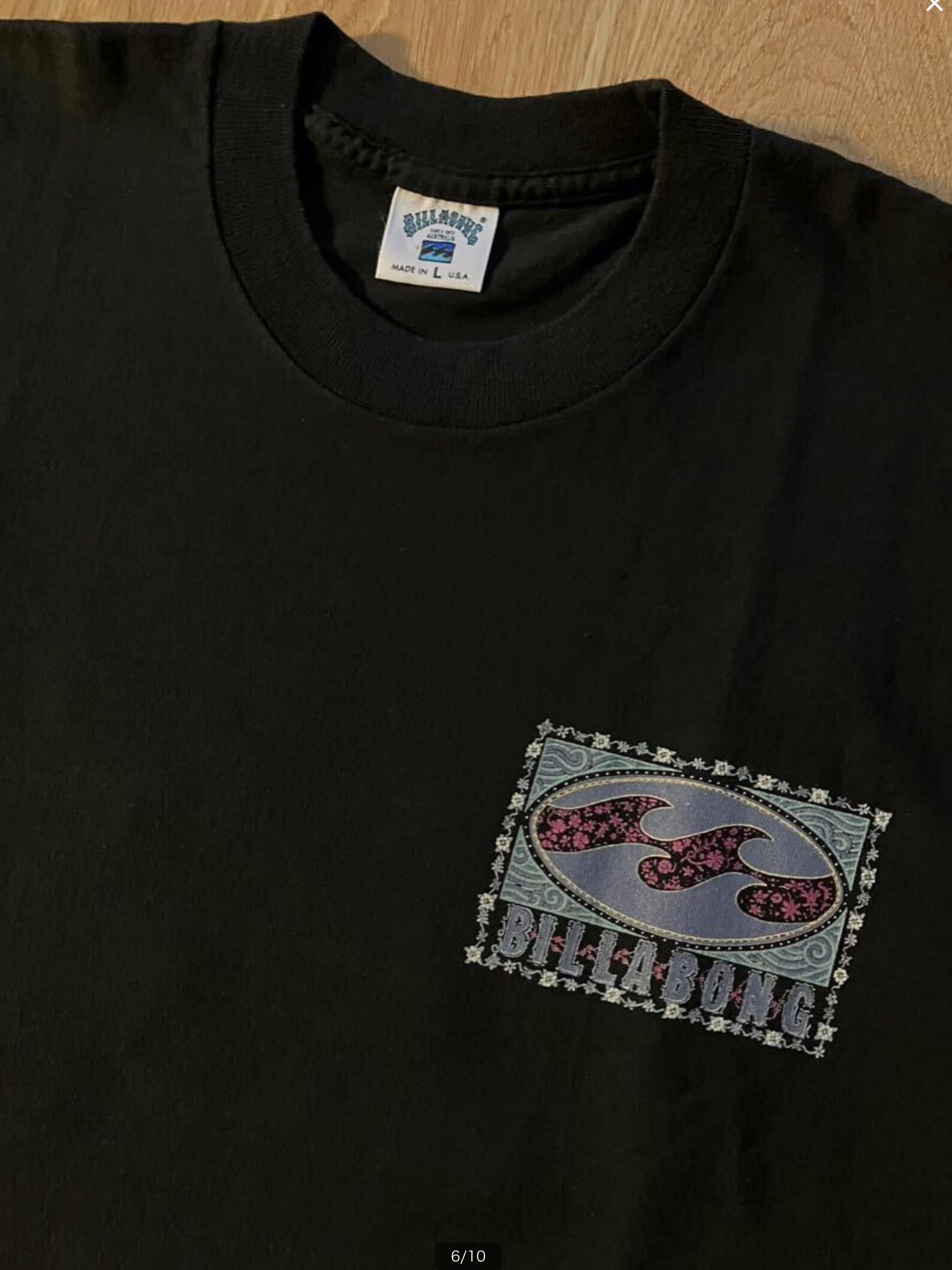 ★色柄/ブラック×ロゴ(波×フラワー)プリント(1992コピーライト)