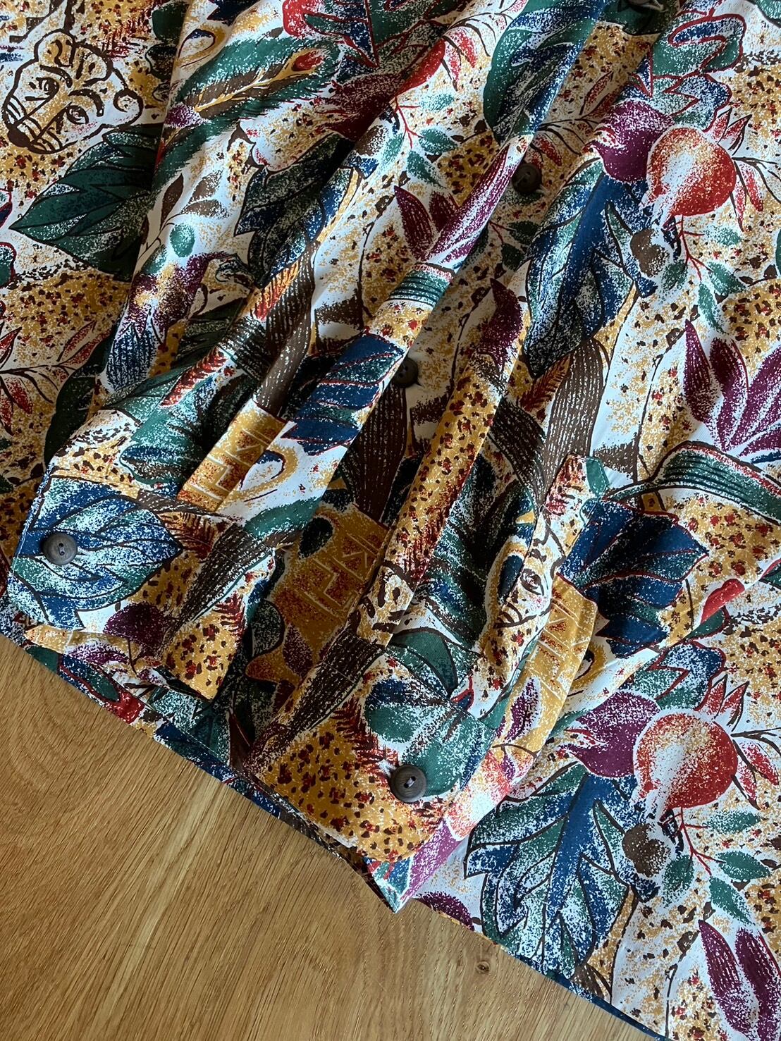 ※オープンカラー、左右裾(スリット)、ウッドボタン/見返し下部にスペアボタン×1/左右胸(ボタン留めフラップポケット付き)