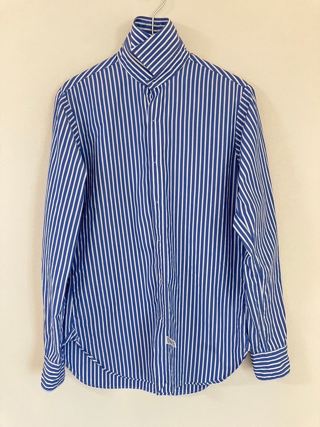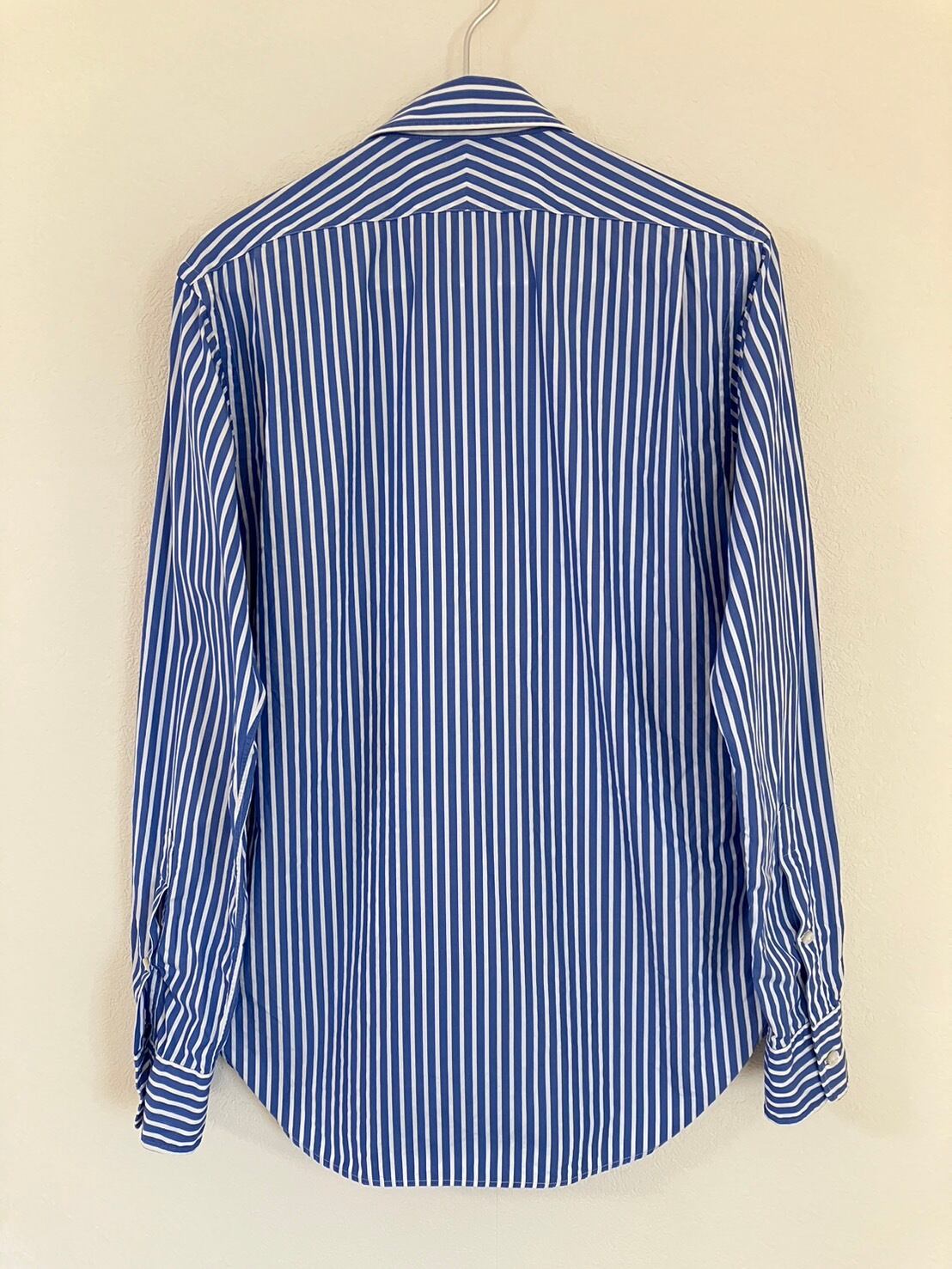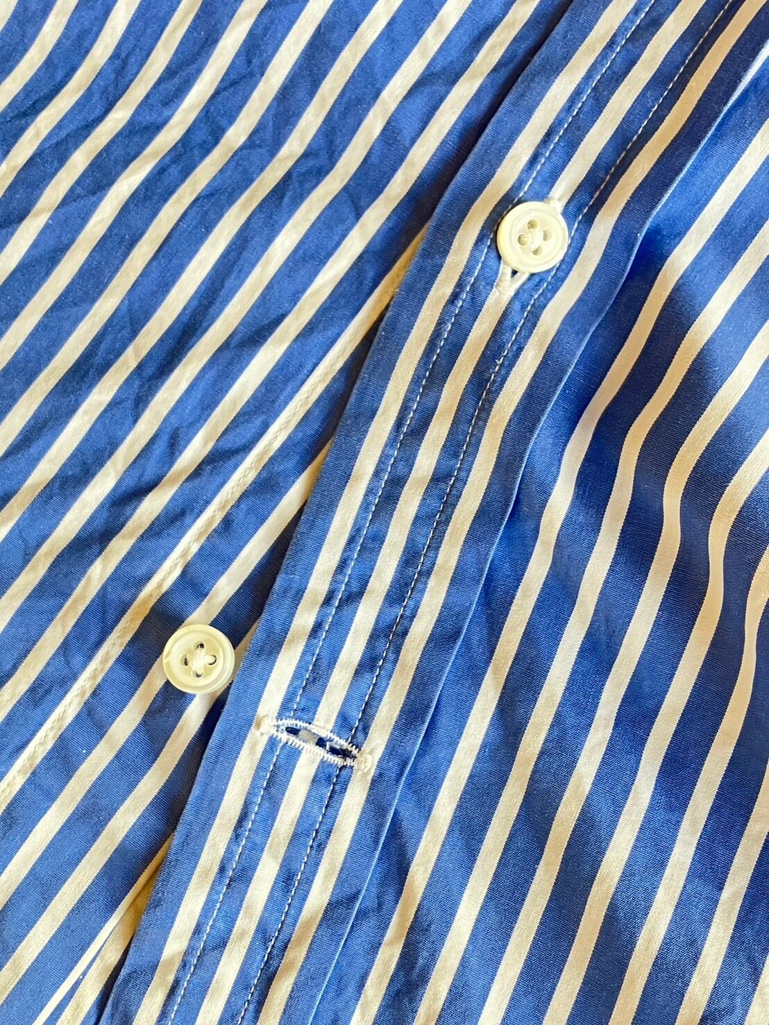 ★爽やかなストライプカラー、イタリア製らしく、マチ付きの縫製、厚みのあるボタン(4mm程)など、仕立ての良いアイテムです。