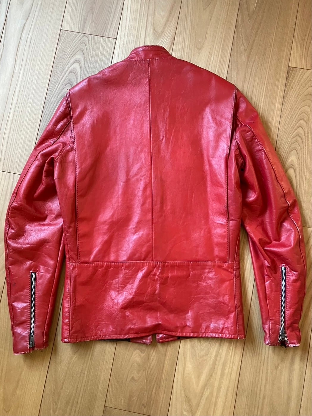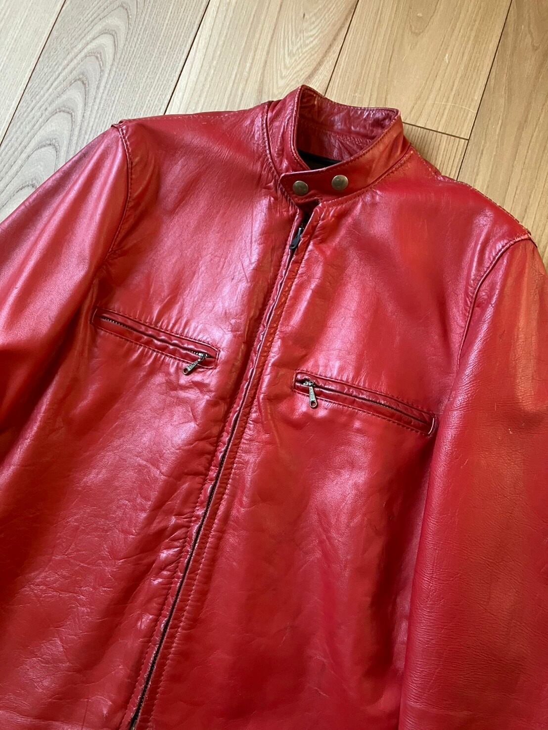 ★全体的にスレ、キズ、汚れ(袖先、肩、ひじ)前見頃表面キズ、銀面剥がれ。