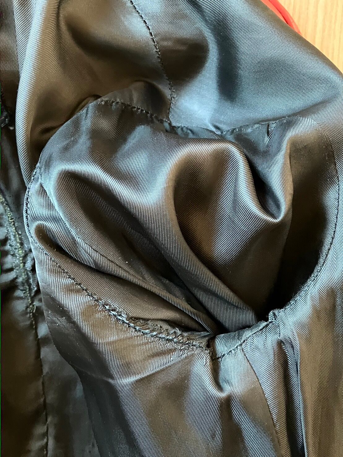 ★裏地/ライニング、ヤブレ、リペア箇所、タグ脇5cm程度のヤブレあり。