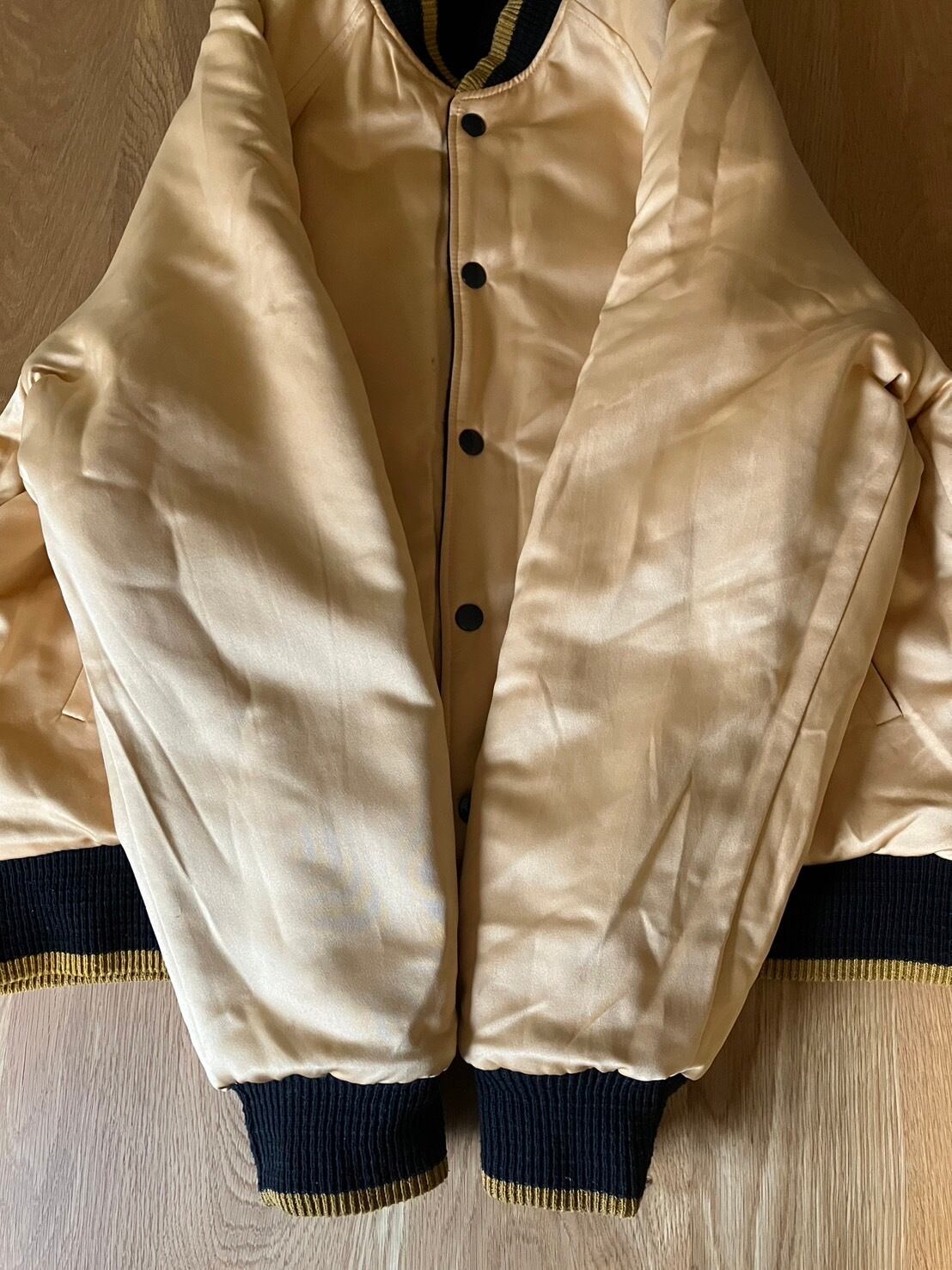 【TJK42】Unkown(ブランド不明) スタジャン(アワードジャケット)リバーシブルブラック×イエロー