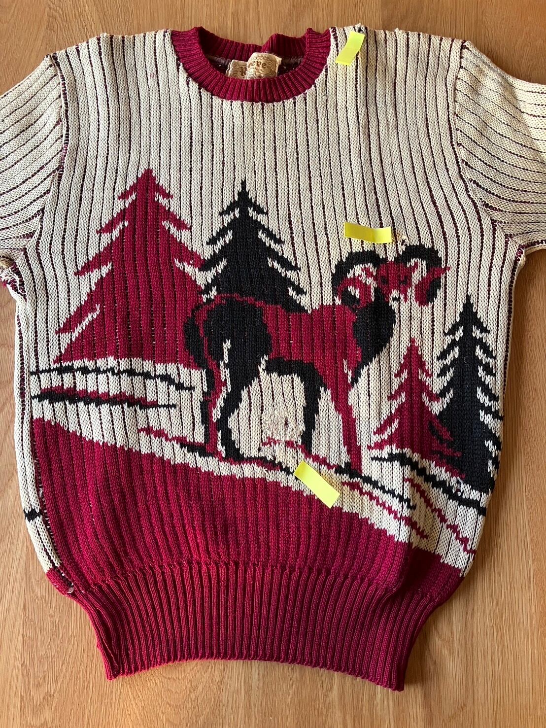 ★前身頃(トナカイ足付近、編み込みのリペア箇所あり)同系色なのんでさほど気にならないと思います。