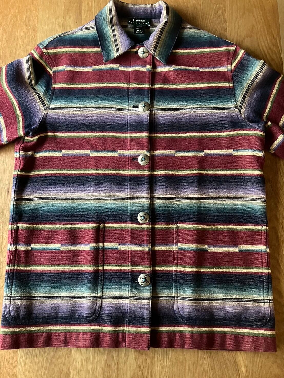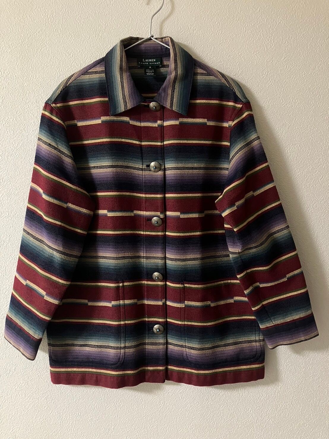 【TRL134】ラルフローレン ラグジャケット マルチボーダー レディース(S) MADE IN USA 80s90s