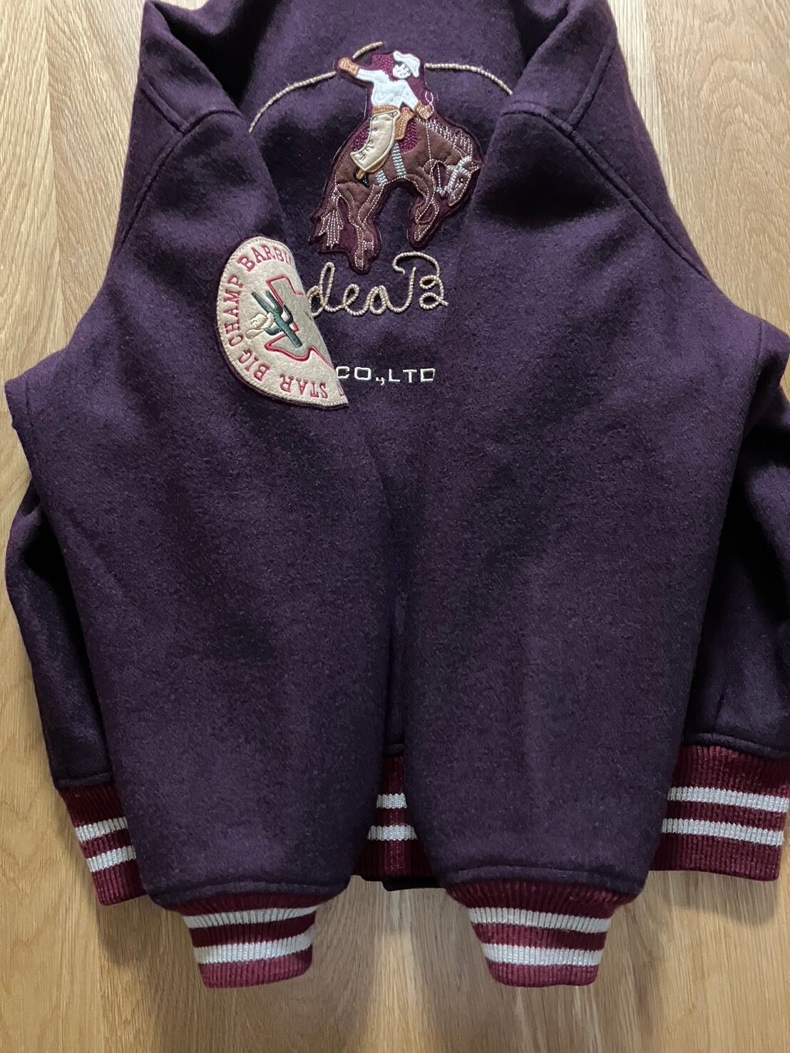 ★色柄/バーガンディ×左胸ワッペン/バック(ロデオパターン/フエルト刺繍)