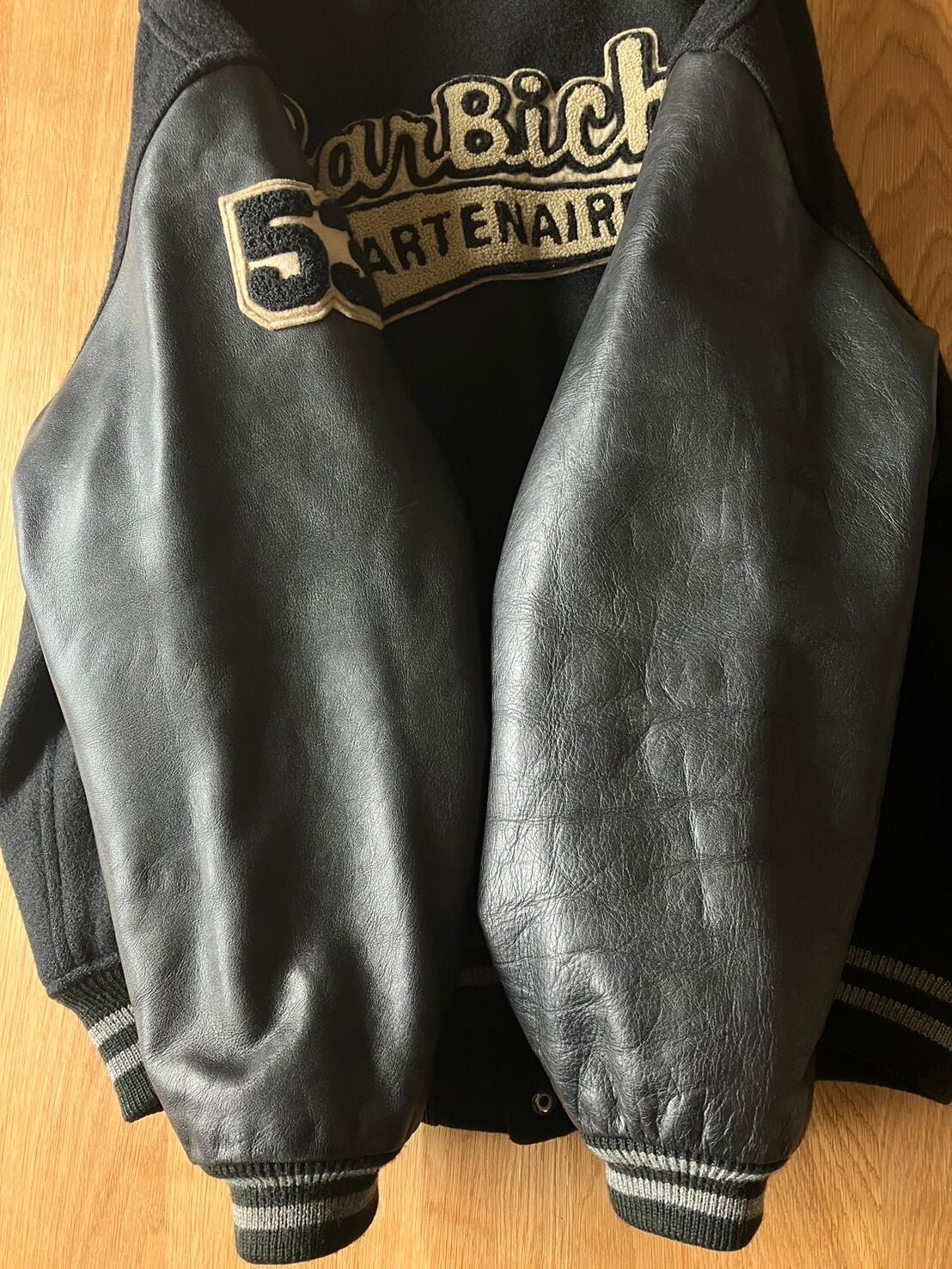 ★色柄/ブラック×レザー部分(ブラック)×左胸、左袖、バック(ワッペン付き)