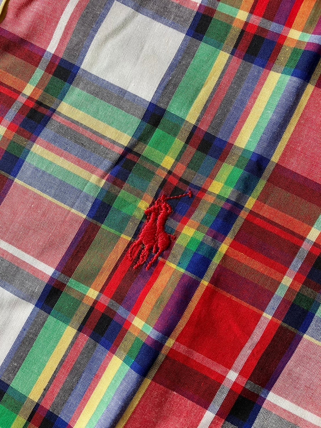 ★光沢のある薄手のコットン 100%生地、ラルフローレンらしいラグジュアリーなマドラスチェックのシャツです。